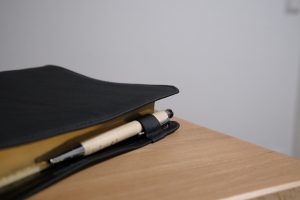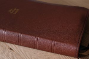 Wir bieten zwei grundsätzliche Varianten an Bibel-Rebinds an. In der »Basis« Ausführung verkleben wir den Bibel-Buchblock mit einem unserer Leder. In der »Premium« Ausführung besteht das Bibel-Cover aus zwei Leder-Teilen, die verklebt und ggf. vernäht werden. In beiden Fällen wird die Bibel durch hochwertige Kapital- und Lesebändchen (u.a.) aufgewertet.