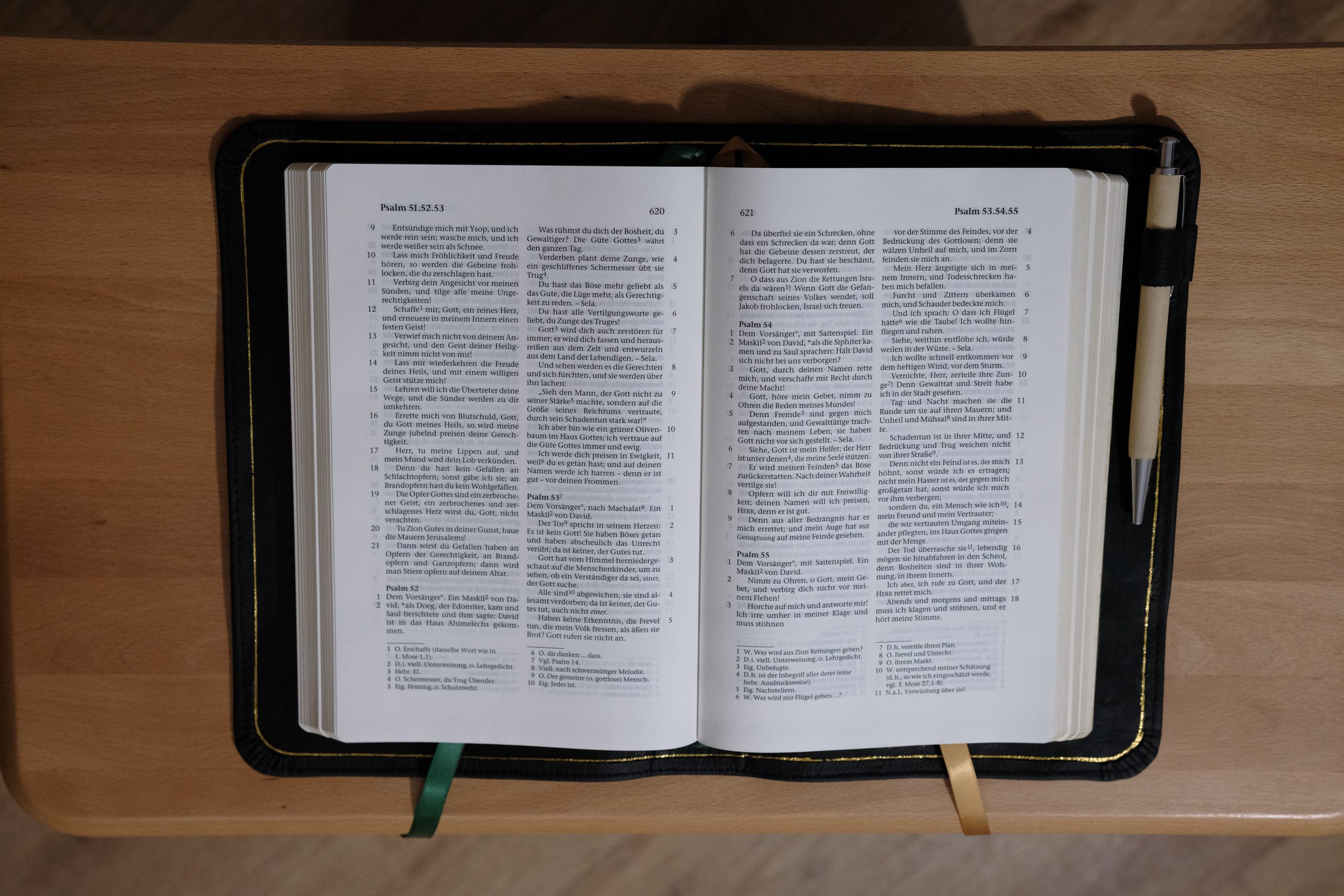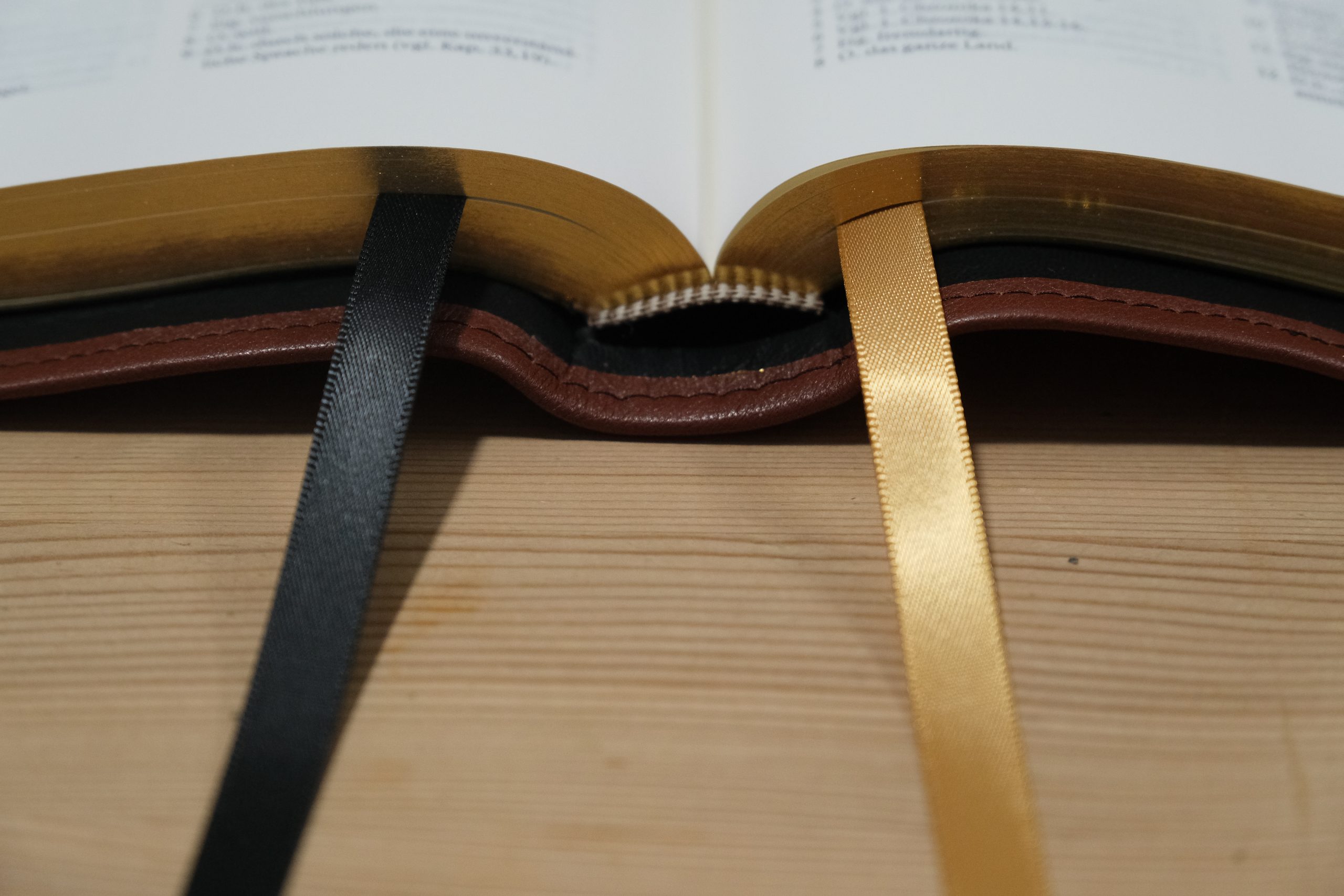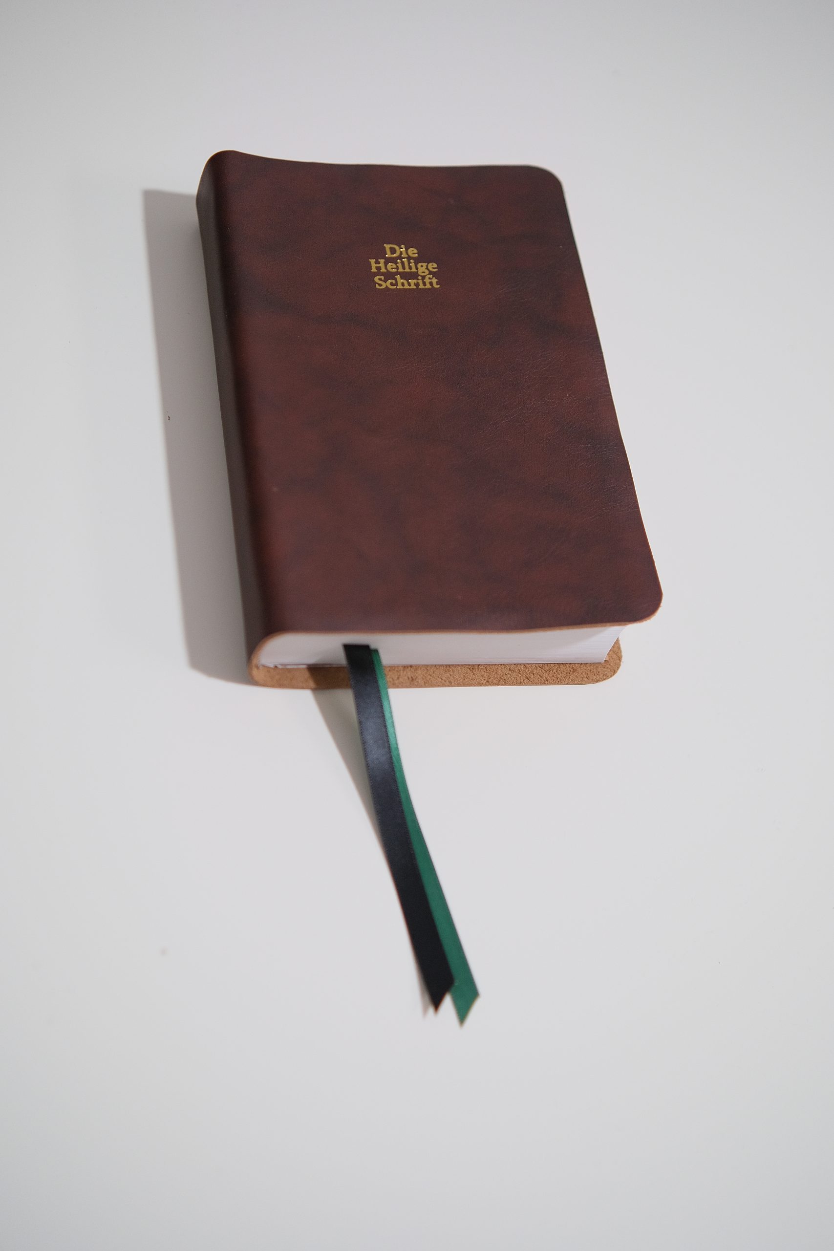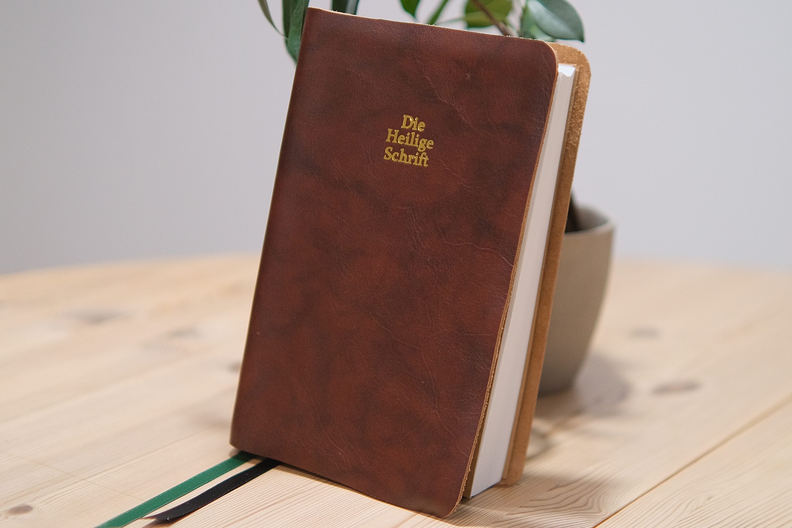 Folgende Bibeln bieten wir direkt zum Verkauf an. Jede Bibel ist ein Einzelstück. Da die Bibel fertig ist, können nur noch begrenzt Änderungen vorgenommen werden (bspw. Prägungen auf dem Cover; diese können ggf. Druckstellen auf der Leder-Rückseite hinterlassen).
